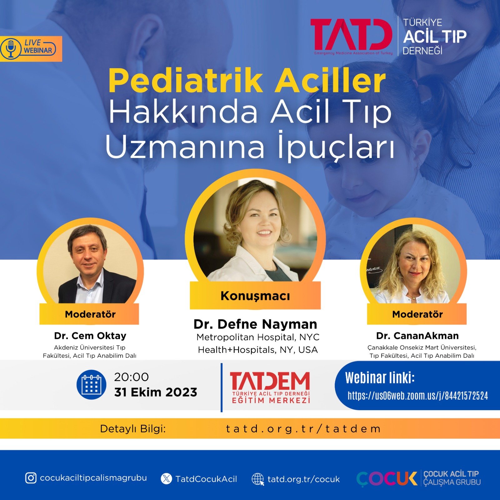 EtkinlikGeçmiş Webinarlarımız Webinar: Pediatrik Aciller Hakkında Acil Tıp Uzmanına İpuçları tarafından Bahadır Arslan 31 Ekim 2023 written by Bahadır Arslan 31 Ekim 2023 0 yorumlar 32 Webinar Kaydı Cocuk Acilwebinar 0 FacebookTwitterPinterestE-posta Bahadır Arslan Keşan Devlet Hastanesi previous post Webinar: Doğru Bilinen Yanlış Pediatrik Acil Uygulamaları next post Acil Servislerde Çocuklara Yönelik Bakım Standartları-Uluslararası Acil Tıp Federasyonu (IFEM) You may also like Webinar: ATLS11 Çocuk Travmasında Neler Değişti 4 Mart 2026 Webinar: Kritik Çocuk Hastanın Tanınması 18 Şubat 2026 Webinar: PALS-2025 15 Ocak 2026 Webinar: Çocuk Acil Tıp Literatüründe Gezinti 16 Aralık 2025 Webinar: Çocuklarda Hızlı Ardışık Entübasyon 18 Kasım 2025 Webinar: Çocuklarda Menenjit 21 Ekim 2025 Leave a Comment Yanıtı İptal Et Save my name, email, and website in this browser for the next time I comment. Δ