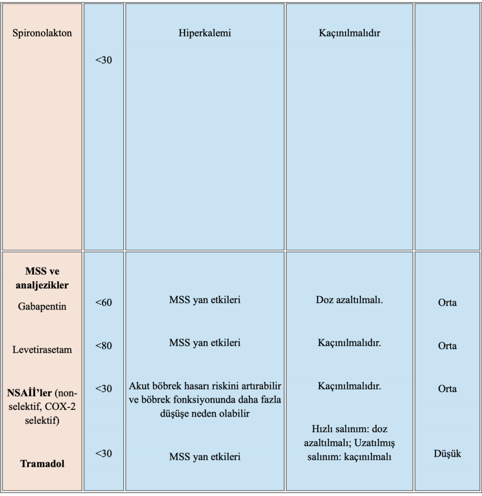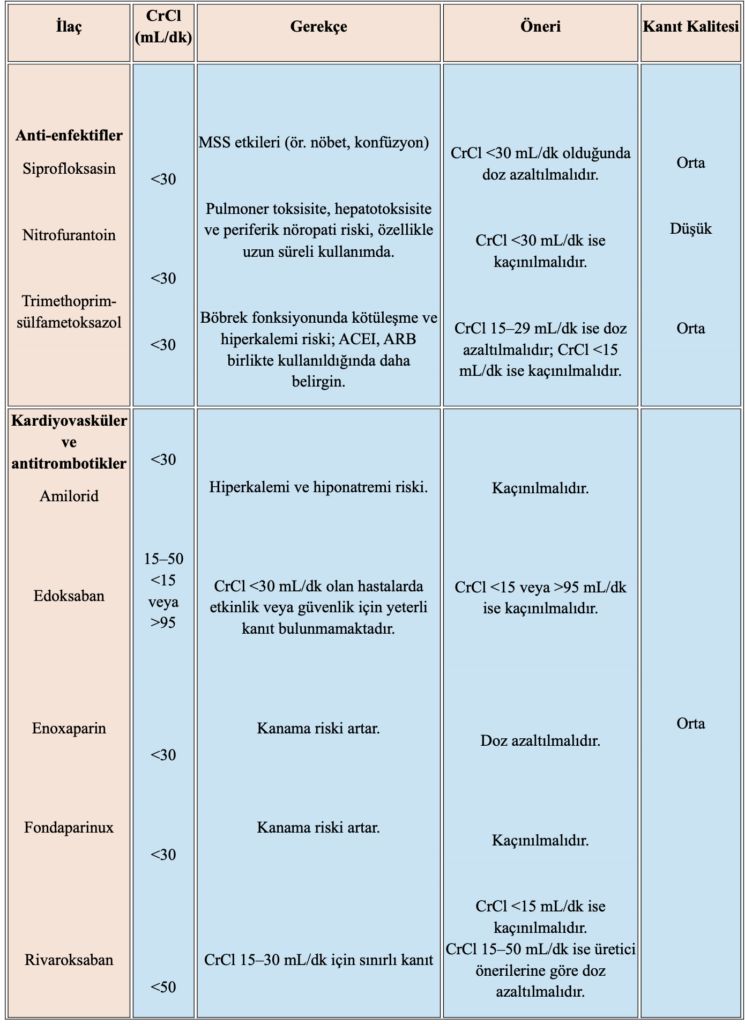 - Tedavide kullanılan nonsteroid antiinflamatuar (NSAİ) ilaçlar, kolşisin ve glukokortikoidler yaşlı hastalarda böbrek fonksiyon bozukluğu, gastrointestinal kanama ve ilaç etkileşimleri açısından dikkatle değerlendirilmelidir.