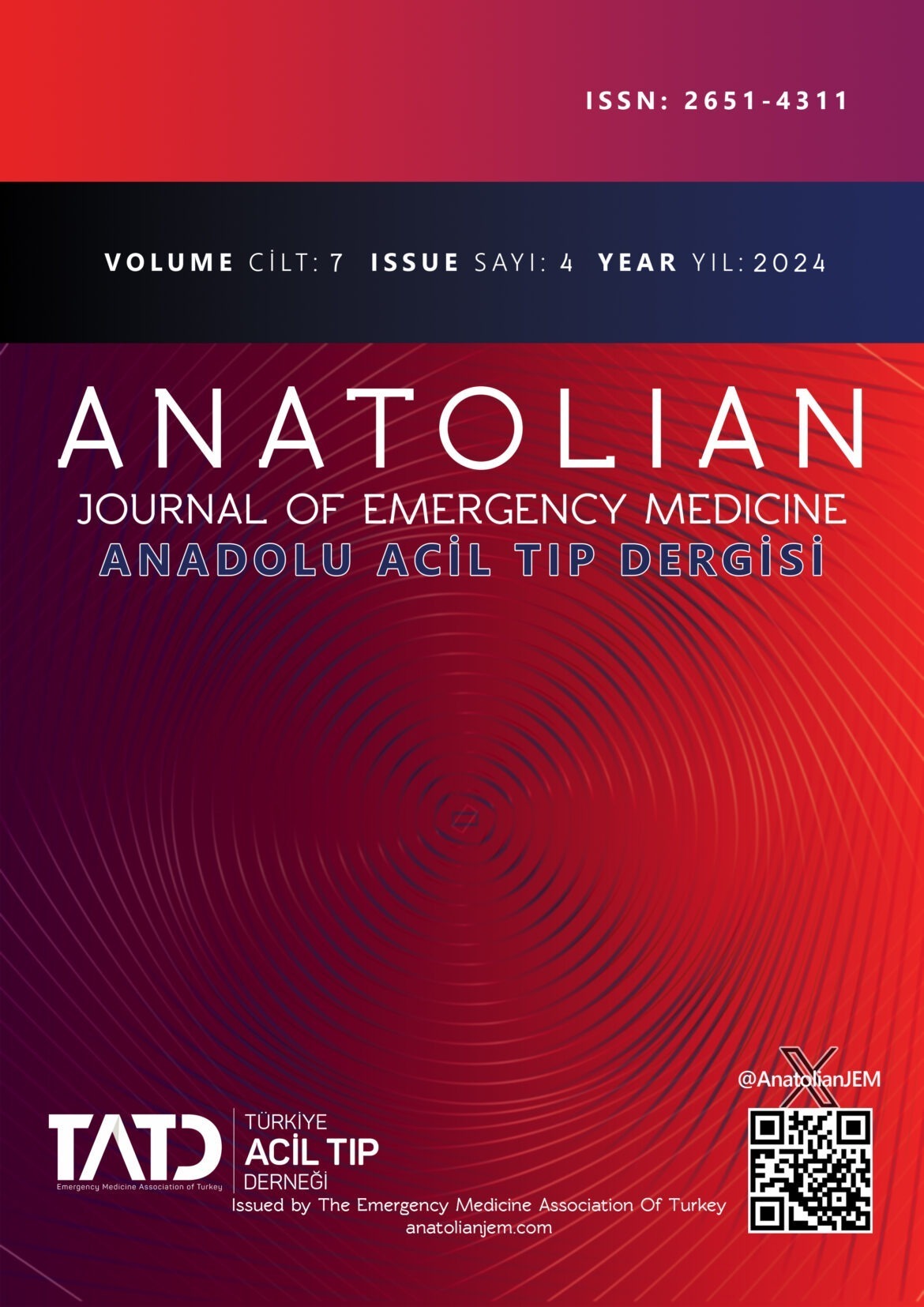 Derneğimiz bünyesinde yayınlanan Anatolian Journal of Emergency Medicine 2024/4 sayısı basılmıştır. https://dergipark.org.tr/tr/pub/anatolianjem/issue/89304… adresinden ulaşabilirsiniz.
